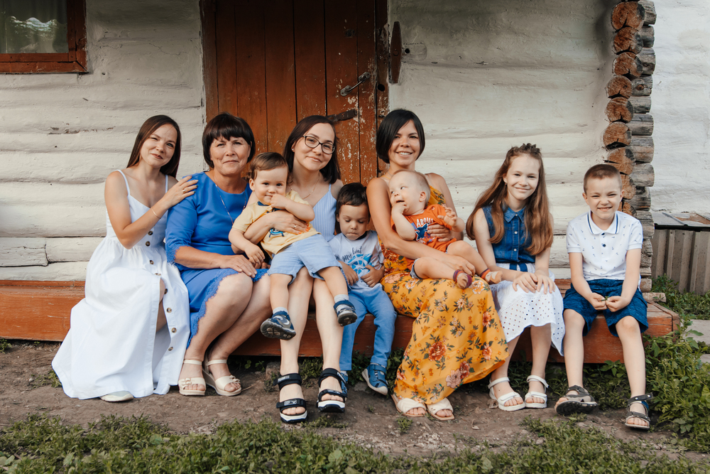 Встреча трех сестер в родительском доме мамы. Прогулка по близким и родным местам. Семейная съемка в деревенской местности